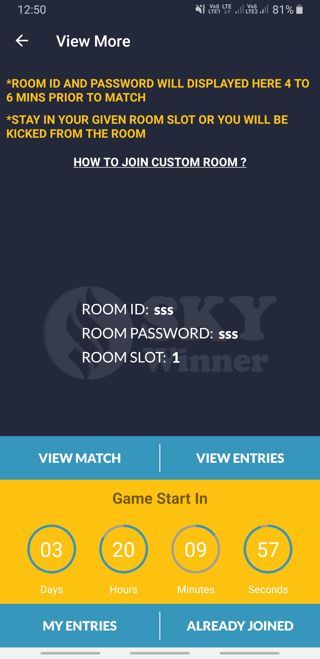 Sky Winner is a PUBG tournament app built for android platform with secure web based admin panel.