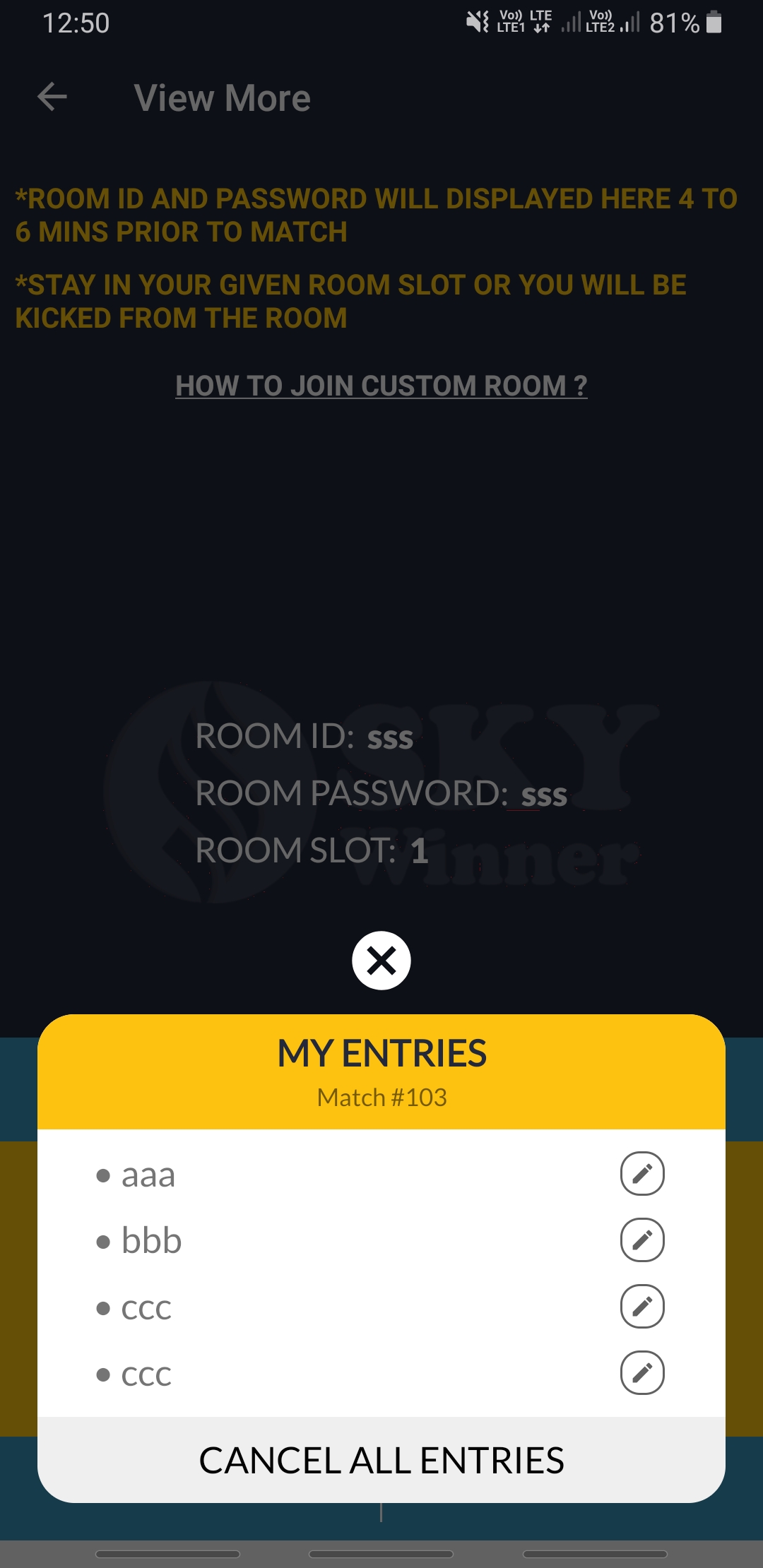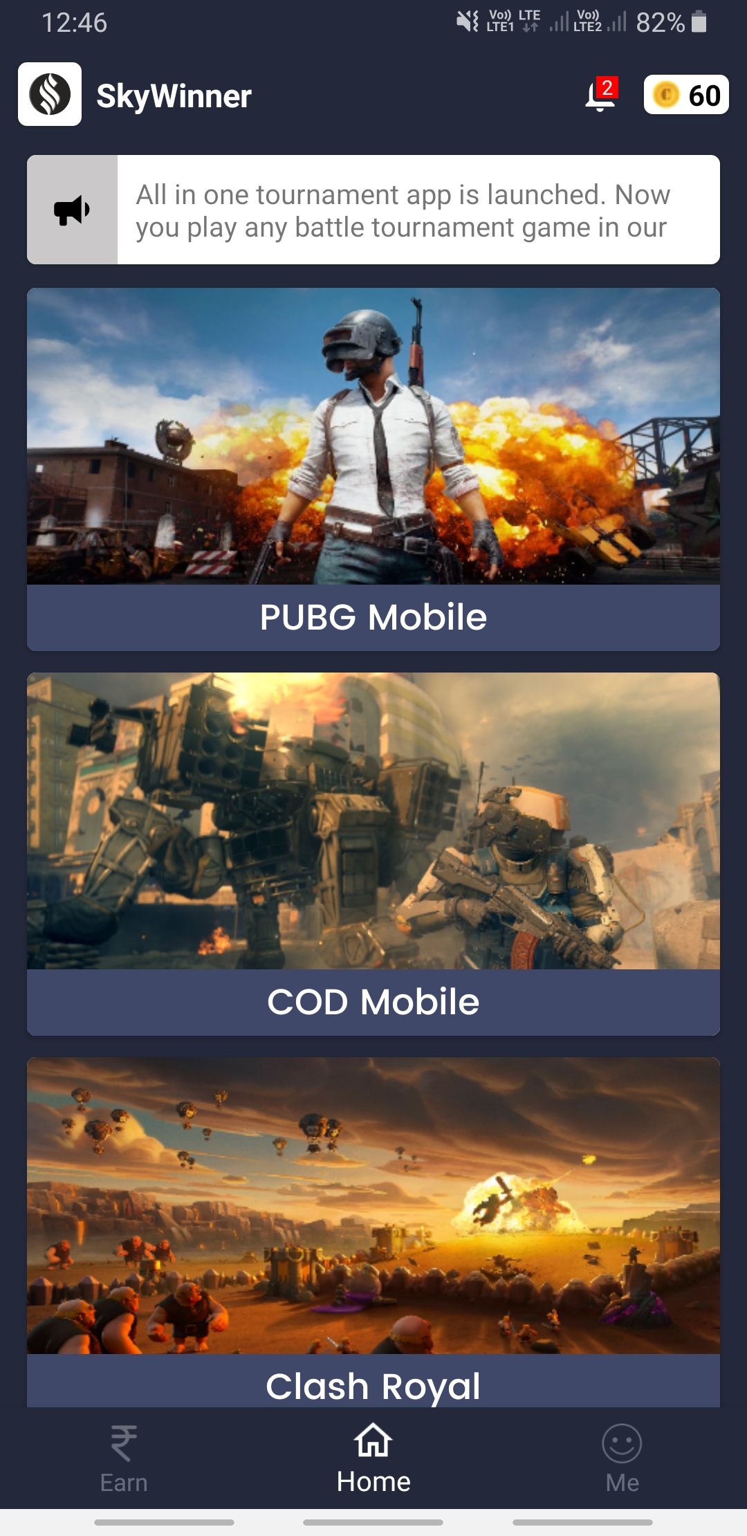 Sky Winner is a PUBG tournament app built for android platform with secure web based admin panel.
